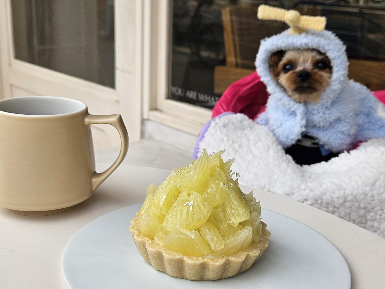 旬のイチゴを使ったパフェやタルトも魅力的で迷いましたが、文旦のタルトの圧倒的な美しさに、思わず目が離せなくなりました。