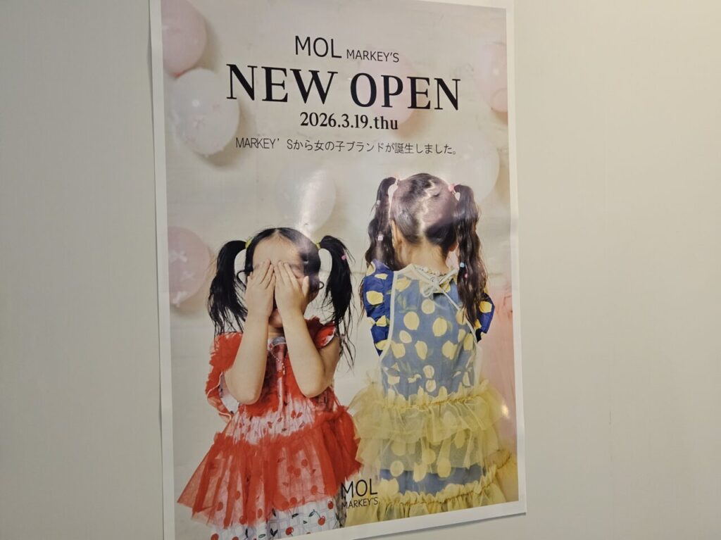 人気子供服ブランド「MARKEY’S(マーキーズ)」が手がける、女児向けのセレクトショップ「MOL MARKEY’S(モルマーキーズ)」が、2026年3月19日に「アーバンドック ららぽーと豊洲」にオープンすることが分かりました。